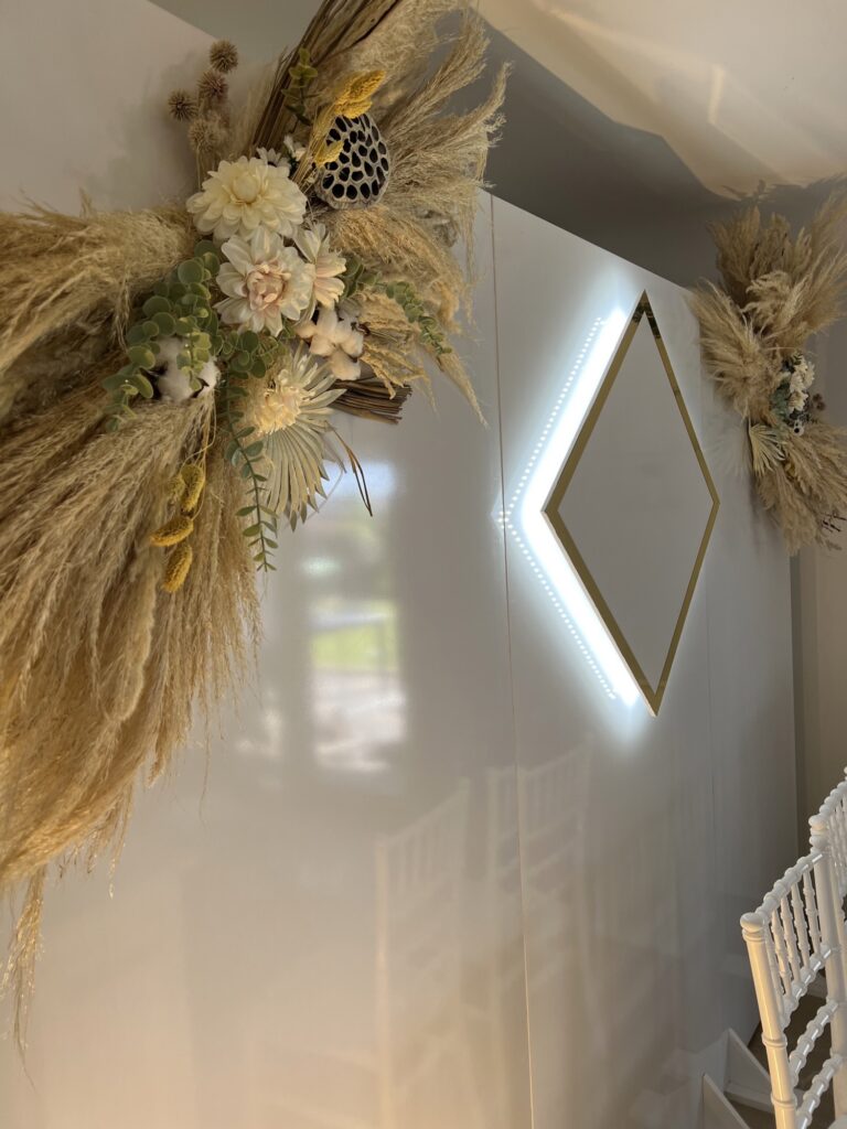 Bemærk at blomster og tilbehør ikke medfølger men kan lejes også, eller du kan bestille en fuld opsætning og lade os stå for det hele.